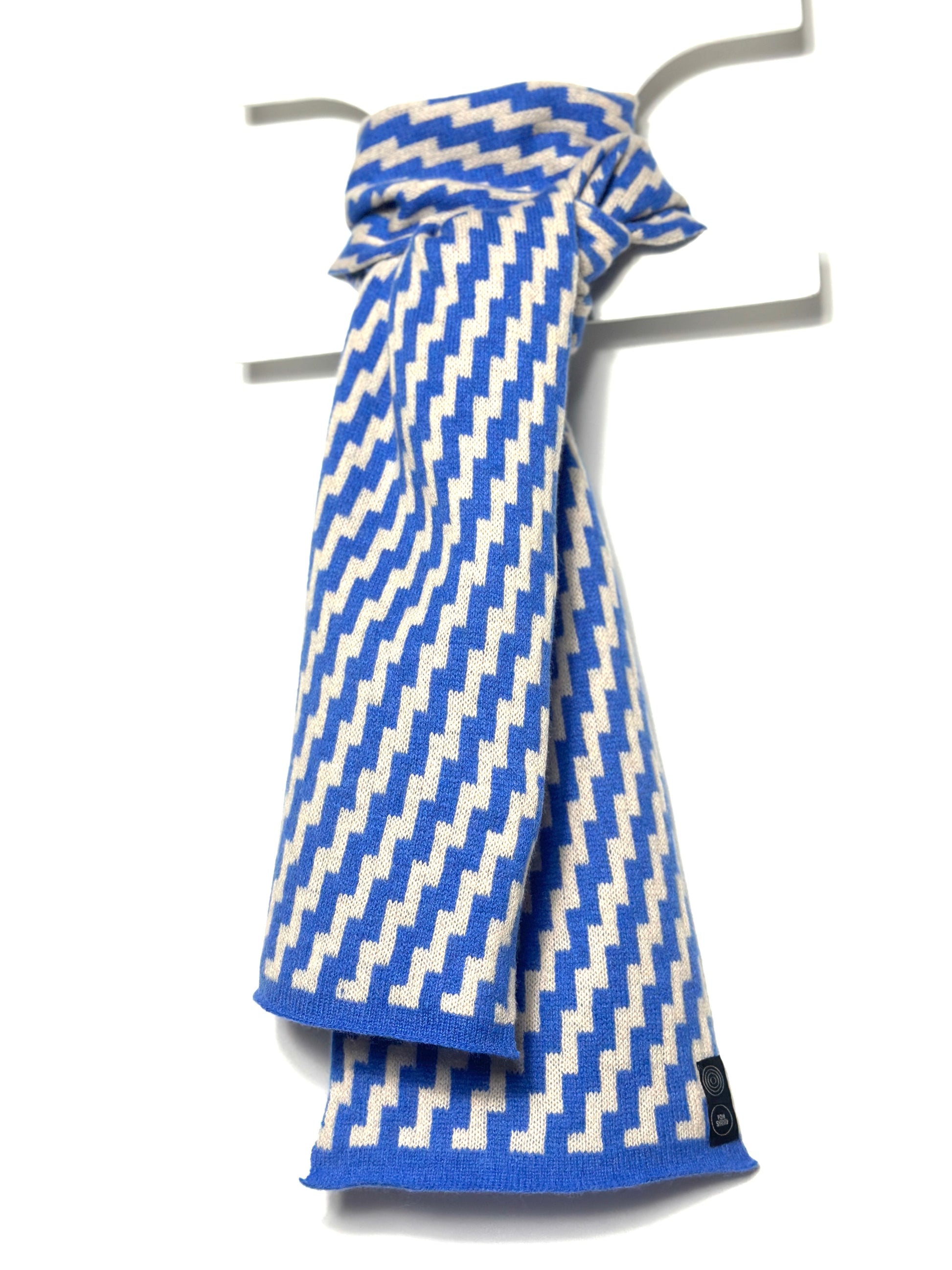 Cornflower Blue & Oatmeal Lambswool Rick Rack Scarf